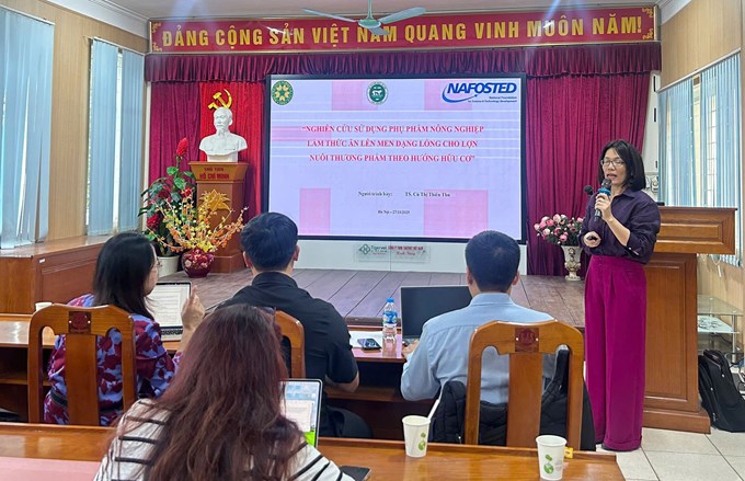 Chiều ngày 27/10/2025, tại phòng Hội thảo - Khoa Chăn nuôi, Học viện Nông nghiệp Việt Nam đã diễn ra Hội thảo khoa học với chủ đề “Bổ sung dinh dưỡng trong khẩu phần nhằm nâng cao chất lượng sản phẩm chăn nuôi”. Sự kiện nằm trong khuôn khổ đề tài Nafosted “Nghiên cứu khẩu phần thức ăn có bổ sung Sacha inchi và thảo dược nhằm nâng cao chất lượng thịt gà lông màu” (Mã số 08/2022/TN), do TS. Nguyễn Công Oánh làm chủ nhiệm.